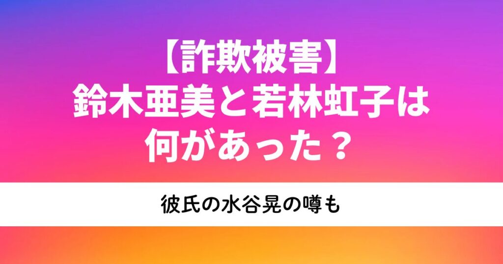 【詐欺被害】鈴木亜美と若林虹子は何があった?彼氏の水谷晃の噂も