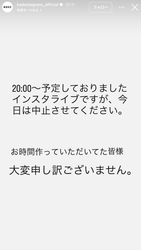適切に対応すべく作業を進めているとコメント発表 - Aぇ! groupの正門良規さんインスタライブ中止